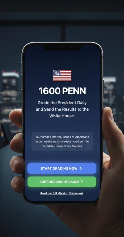 Direct Delivery to D.C. We don't just store your data; we move it. Every Monday morning, 1600Penn compiles all citizen grades into a formal National Performance Report. This comprehensive briefing is delivered directly to the White House and shared across public channels to ensure the administration sees exactly where the people stand.