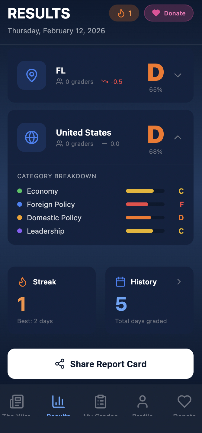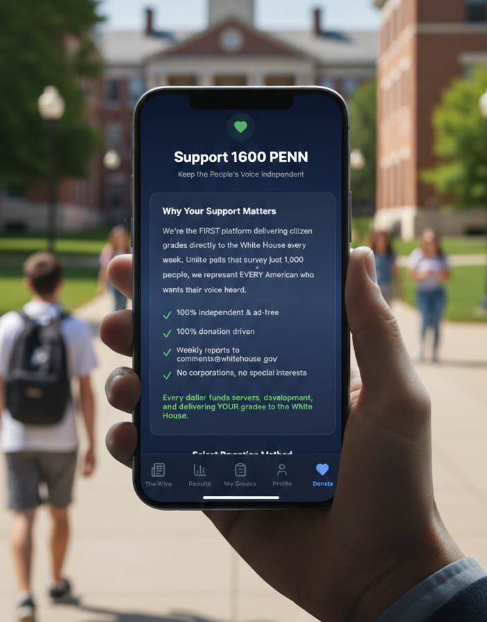 Every dollar donated goes directly toward maintaining the technology that bridges the gap between your phone and the Oval Office. We are building a more accountable government, one grade at a time—powered by the people, for the people.